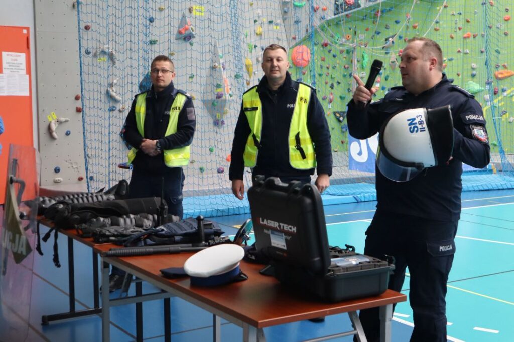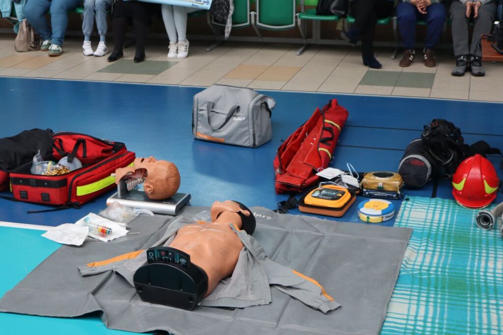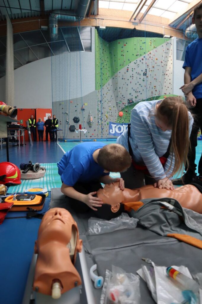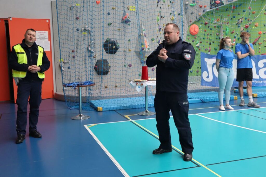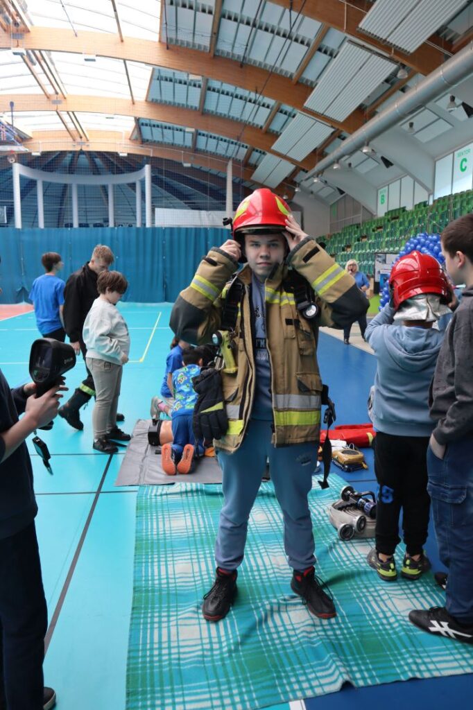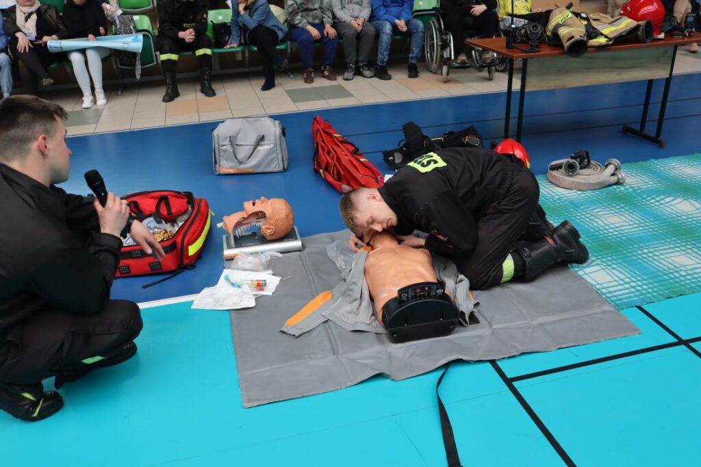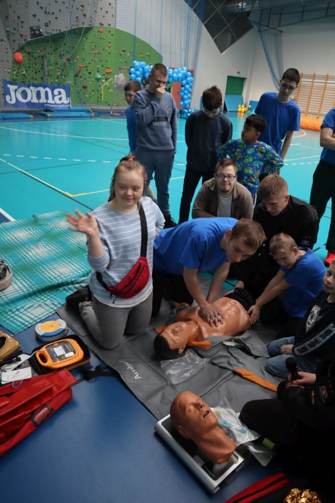 Uroczystość „Niebieskich Igrzysk” rozpoczęła się podniosłym przywitaniem wszystkich uczestników oraz gości. Już na wstępie wydarzeniu nadano wyjątkowy charakter dzięki pokazowi przygotowanemu przez Powiatową Komendę Policji w Pińczowie oraz Państwową Straż Pożarną w Pińczowie. Zaprezentowane działania służb mundurowych przybliżyły ich odpowiedzialną i wymagającą pracę, a także podkreśliły znaczenie umiejętności udzielania pierwszej pomocy przedmedycznej.