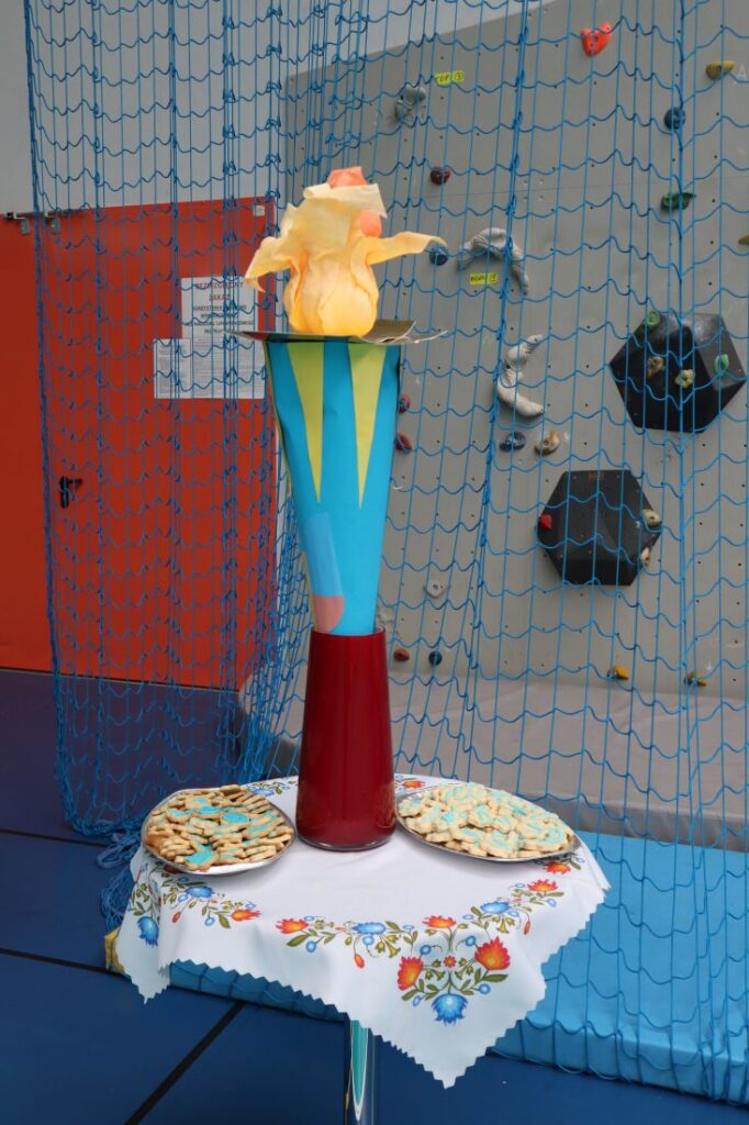 Kolejnym, niezwykle uroczystym momentem było oficjalne otwarcie igrzysk, któremu towarzyszyło wniesienie ognia – symbolicznego znicza olimpijskiego. W atmosferze dumy i radości odbyła się prezentacja drużyn. Najmłodszych reprezentowała grupa przedszkolna „Tygryski”, natomiast uczniowie szkoły wystąpili jako „Niebieskie Tornada”, „Błękitne Błyskawice” oraz „Granatowe Zorze”.