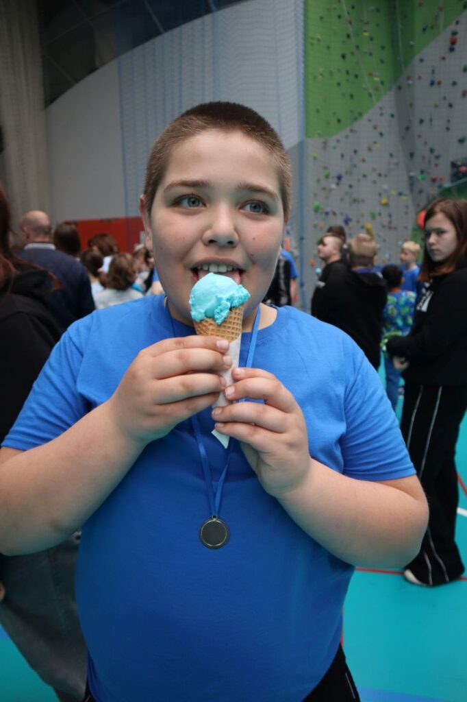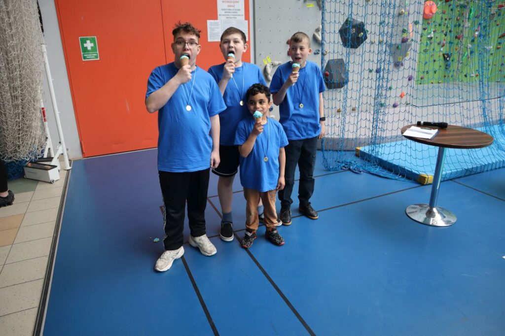 Zwieńczeniem wydarzenia był „Bieg Równości” – symboliczny i pełen wzruszeń moment, który ukazał, że wszyscy jesteśmy jednością i razem osiągamy sukces. Na zakończenie wszyscy uczestnicy zostali uhonorowani złotymi medalami, a uroczystość zakończyła się słodkim akcentem w postaci niebieskich lodów, które stały się radosnym podsumowaniem tego wyjątkowego dnia.